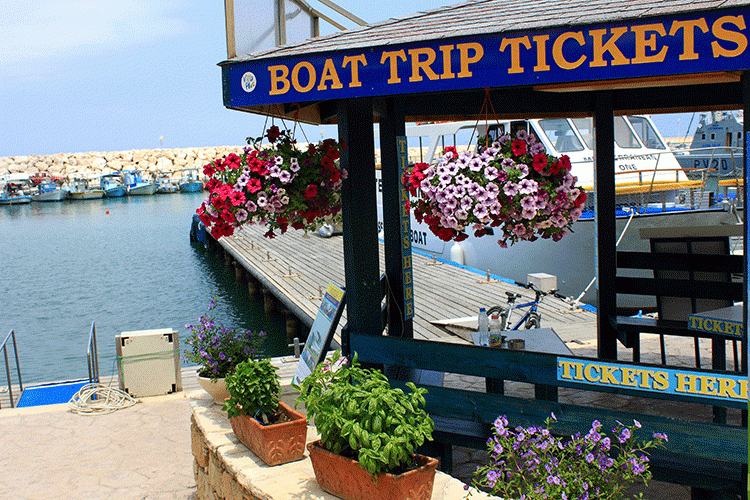 После обеда мы отправимся на пристань, чтобы приобрести билеты на яхту. Стоимость прогулки 15 евро для взрослого, 10 евро для ребенка до 12 лет. Продолжительность - 3 часа. Реклама сообщает, что во время морской прогулки мы увидим купальни Афродиты со стороны моря, древнюю церковь Святого Георгия, остров Святого Георгия и живописные бухты. Наше морское путешествие началось!