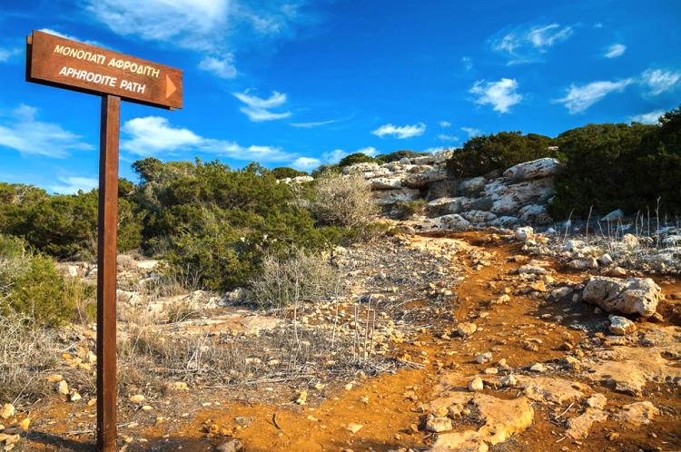 Локация — заповедный полуостров Акамас. Начало путешествия — Купальня Афродиты. Протяженность 7 км. Продолжительность 3-4 часа. Самая высокая точка 319 метров над уровнем моря. С тропы Афродиты открываются потрясающие виды на бухту Полис Хризохус, леса Пафоса и полуостров Акамас. На тропе есть фонтан с питьевой водой!