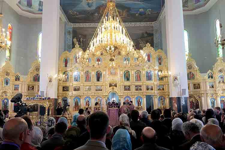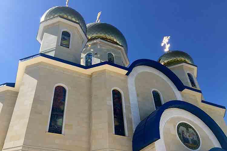 Новая церковь, построенная в старинных российских традициях, способна вместить одновременно до 650 прихожан. Ее золотые купола были доставлены из России, как и оконные витражи с изображением русских берез.