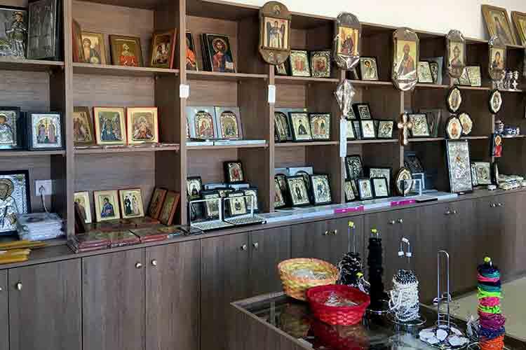 При церкви открыта лавка, где посетители смогут приобрести иконы, сувениры и кипрские традиционные сладости.