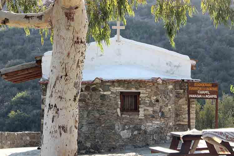 Церковь Богородицы Любви (Panagia Tis Agapis) находится вдали от селений. Дорога к ней пролегает через горы и поля...