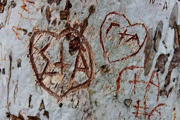 Его ствол и ветви исписаны признаниями в любви.