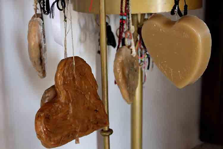 Здесь вы увидите огромное количество сердец из воска - считается, что воск впитывает силу и энергию святого места и передает хозяину вещи.