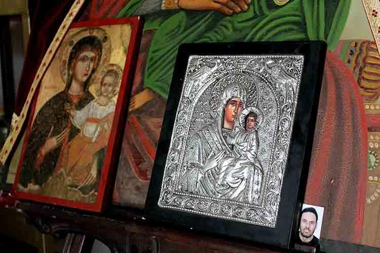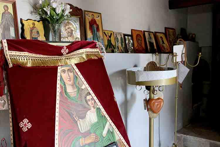 В церкви паломники оставляют свои иконы и фотографии любимых.