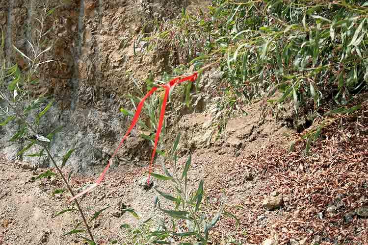 Повязанные на кусты красные ленточки покажут правильный путь к церкви...