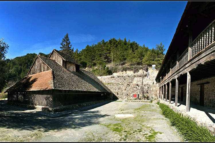 Это чудо - Панагия ту Арака - надежно спрятано в лесах Троодоса. Архитектура церкви остается в тени деревянной решетки, которой обнесено здание церкви. Решеткой церквовь обнесли сравнительно недавно для того, чтобы сберечь фрески, которыми церковь покрыта даже снаружи.