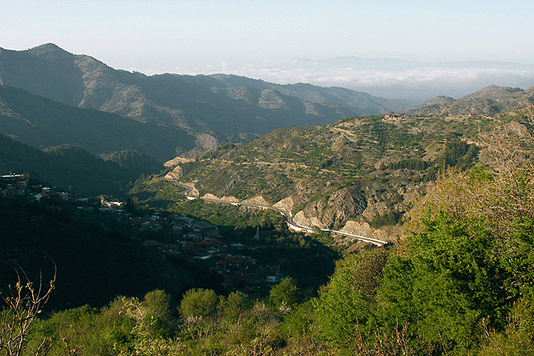 Лесная растительность на протяжении всего маршрута состоит из калабрийской сосны, золотого дуба (кипрский эндемик), кустарников восточного клубничного дерева. Часто тропа будет вплотную подходить к скалам из диабаза – это кристаллические мелкозернистые вулканические горные породы.