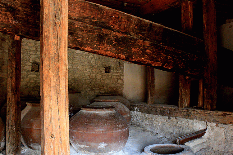 Прогуливаясь по улочкам деревни, обязательно загляните в старую винодельню, где сохранился древний винный пресс, изготовленный из дерева (дата постройки 1822 год). Обратите внимание на даты изготовления огромных глиняных кувшинов, которые хранятся в здании винодельни.