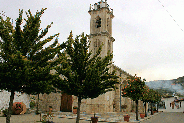 В центре селения возвышается православная церковь Богородицы Хрисоланитиссы. Это изысканный образец базилики, построенной в XVI веке из местного белоснежного камня. Деревянный резной иконостас церкви был создан в 1676 году.