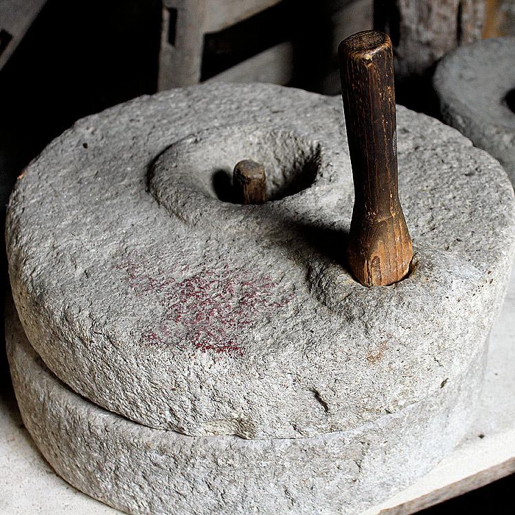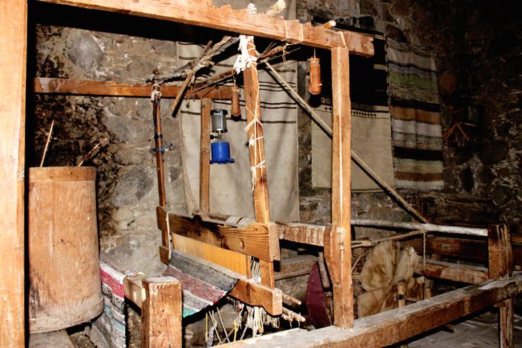 В одном из деревенских домов среди многочисленных домашних инструментов и приспособлений я обнаружила даже кузнечный мех! Вот уж действительно хороший хозяин был мастером на все руки! А это маленький домашний жернов для перемалывания пшеницы.