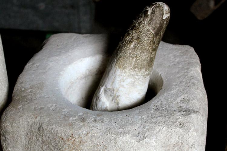 Кофемолка. Вот таким незатейливым способом еще совсем недавно киприоты перемалывали кофейные зерна. Похоже, что эта посудина была позаимствована в неолитических поселениях...