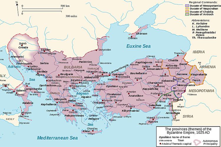 Фемы Византийской империи в 1025 году.