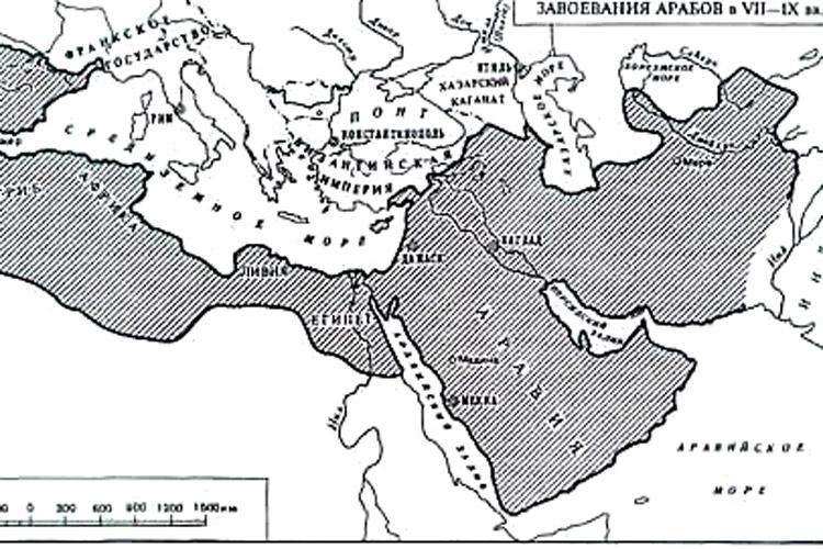 Карта арабских территорий, VII век.