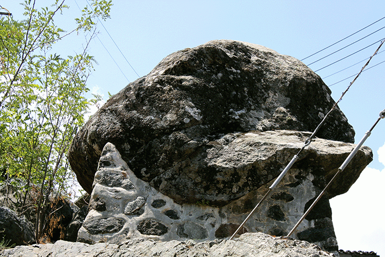 Говорят, что катясь со скалы, камень убил двух молодоженов, которых похоронили под ним.