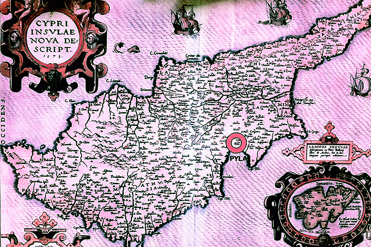 Карта Кипра 1573 года. На ней уже была обозначена деревня Пила.