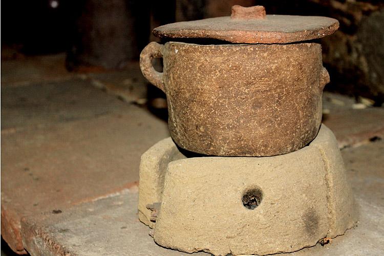 Если же нужно было приготовить или разогреть небольшое количесто еды, то для это существовала вот такая "мини-печка". Разогревалась эта печурка с помощью деревянной щепы, которая складывалась под глиняную кастрюльку. Для поджега и вытяжки существовало небольшое круглое отверстие на стенке этого симпатичного предка современной мини-электроплитки.