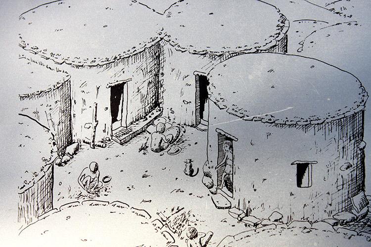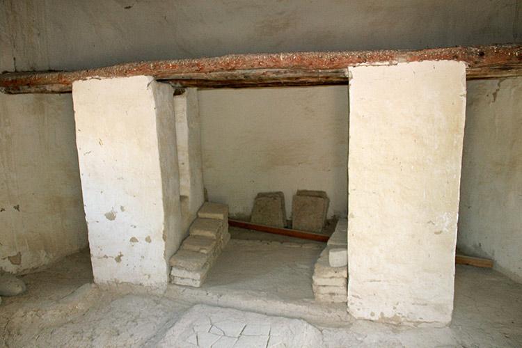 В некоторых домах мы можем увидеть даже подобие домашнего очага – здесь готовили пищу. Интересно, что очаги были построены именно внутри крытых помещений. Очаг находился на специально построенном внутри дома каменном прямоугольнике. Сверху очаг покрывали крупной галькой. И если каменные “посудины” для размалывания зерна можно встретить и за пределами домов, до вот очаг всегда строился только внутри помещений.
