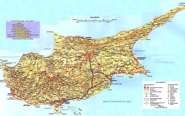 Карта Кипра. Лимассол расположен на южном побережье острова.