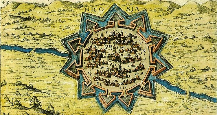 Это карта города Никосия, составленная в 1597 венецианцем Жакомо Франко (Giacomo Franco) для его книги Viaggio da Venetia a Constantinopoli per Mare - "Путешествие из Венеции в Константинополь по морю".