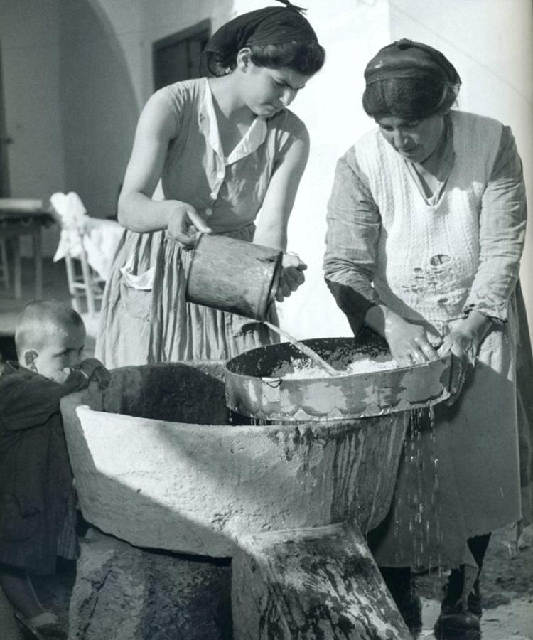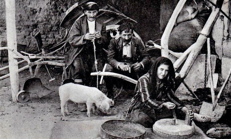 1897 год. Типичное кипрское домохозяйство. Пшеницу до недавнего времени перемалывали вручную с помощью каменных жерновов.