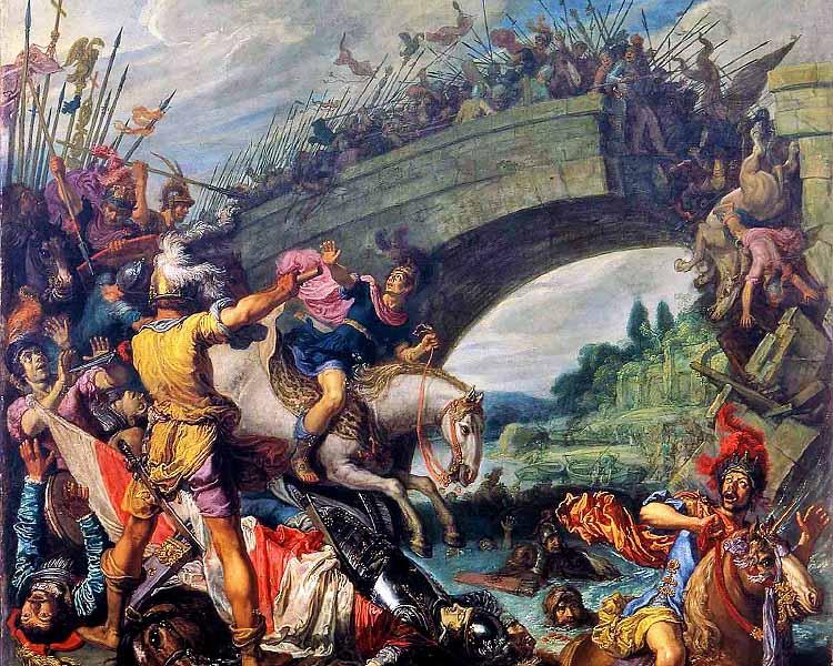 В начале своего правления Константин был язычником. Однажды во время очередной войны во сне Константину явился Христос, который повелел начертать на щитах и знамёнах своего войска греческие буквы ХР, а на следующий день Константину было видение креста в небе. Идя в бой, Константин высоко поднял надо головой крест. Победа была одержана.