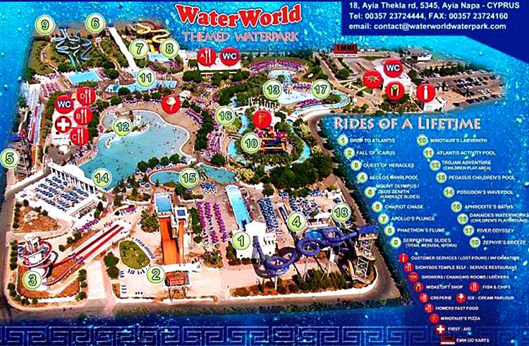 Аквапарк Water World находитсяв 5 минутах езды от Айя Напы, в западной ее части.