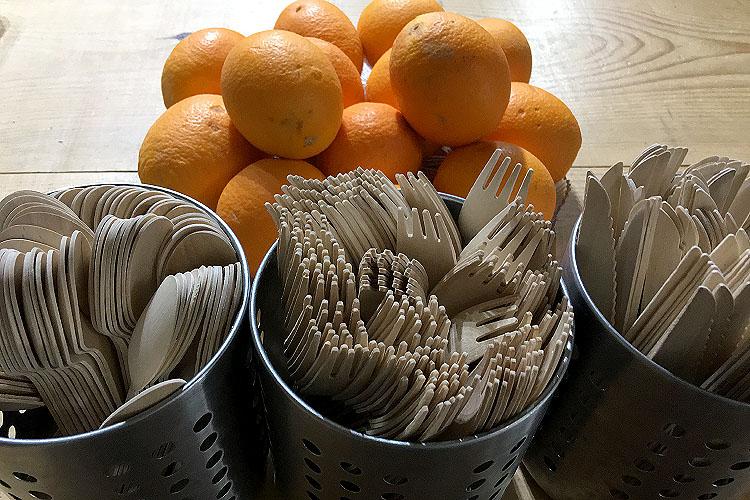 Даже посуда на био ферме Риверлэнд экологически чистая, изготовленная из дерева.