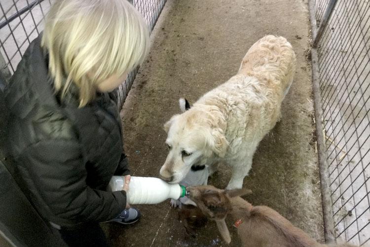 Можете понаблюдать за кормлением малышей коз и овец...