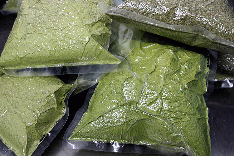 Затем замороженные листья высушиваются и измельчаются в порошок в другом аппарате.