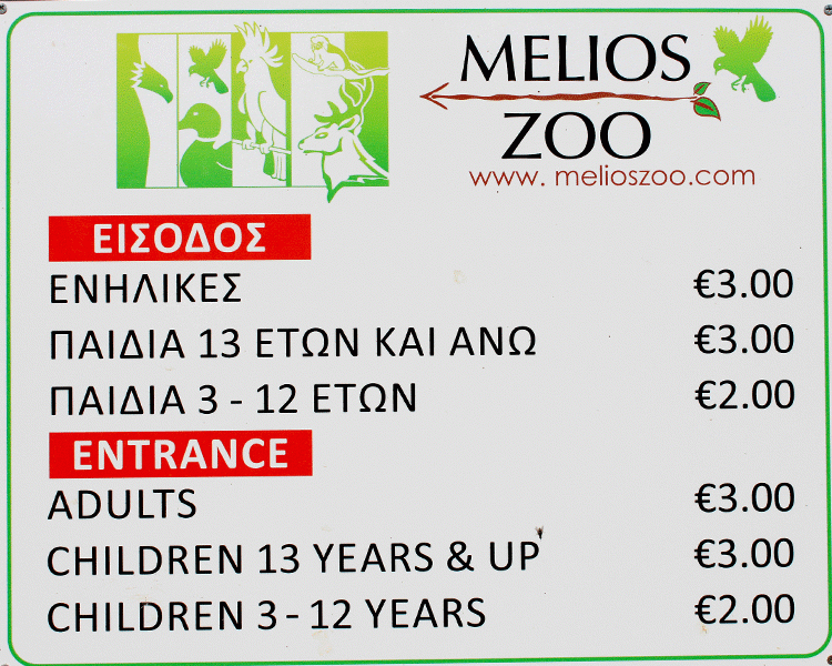 Зооапарк Melios – это отличное место для прогулок с детьми младшего возраста и для проведения уроков на свежем воздухе для школьников, ведь для городских жителей встреча с дикими животными – это всегда интересно и познавательно. Возле каждой клетки и вольера вы увидите таблички, где на двух языках – греческом и английском – предоставлена информация о проживающем здесь животном, о его особенностях и повадках. Кроме того, администрация парка предлагает такую услугу, как экскурсия по зоосаду, во время которой сопровождающий группу сотрудник поделится своими знаниями и расскажет вам о секретах ухода за дикими животными.