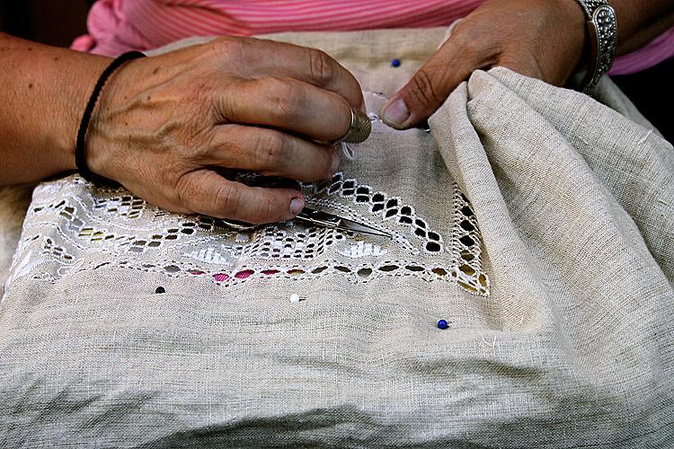 Что необходимо для создания лефкарийского кружева? Нитка, игла, маленькие ножницы, льняное полотно. А еще знание техники вышивки, аккуратность и много много терпения. На создание скатерти размером 100Х100 см порой уходит целый год кропотливой работы.