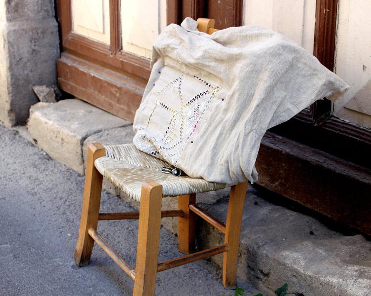 Мастерица отлучилась от работы – такие стульчики с оставленной ненадолго работой вы увидите у многих домов этой деревни.