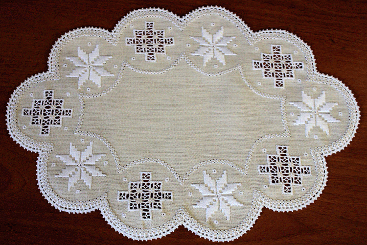 Сегодня для лефкарийского кружева используется ирландский лен – он был выбран за свое безупречное качество (идеально ровное переплетение нитей) и французская нить "мулине",которая не линяет и дает усадки после стирки.