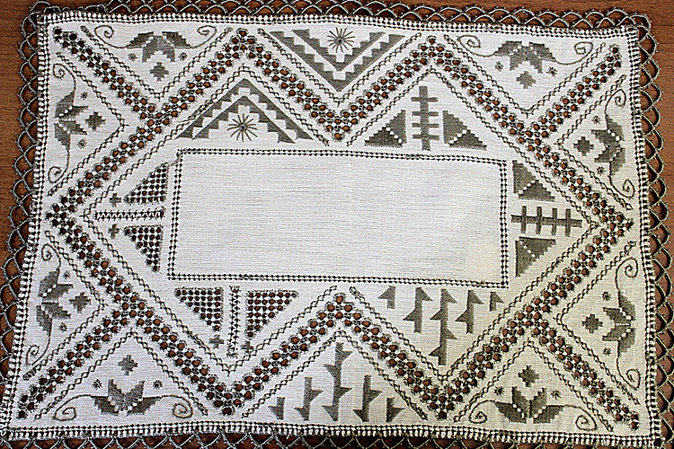 Для нанесения рисунка используют только три цвета: белый, бежевый и оливковый. Обычно вся скатерть выполняется в одной цветовой гамме. Исключения – рисунок выполнен в двух цветах – встречается крайне редко.