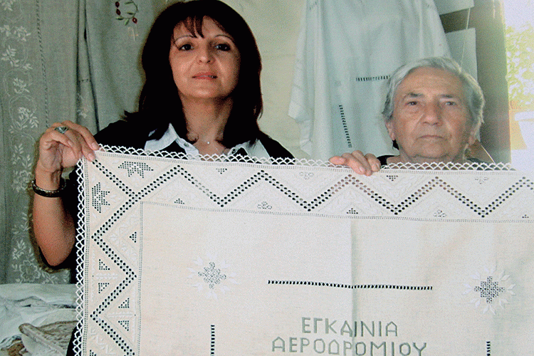Я опять удивилась: “Вы вышивали такие красивые вещи, вы должны были быть богатыми людьми!” Евдокия рассмеялась: “Девочка моя, богатыми в деревне были не те, кто вышивал, а те кто торговал нашими работами!” И она рассказала мне историю о том, как однажды одна из жительниц Лефкары (“Ух, она была боевая!”, - добавляет Евдокия) решила отправиться в Египет со скатертями из Лефкары. Она расстелила старую простыню на площади деревни, женщины приносили свои работы и складывали на эту простыню, а “коммерсантка” аккуратно записывала, кто что сдал”. Затем она завязала простыню узлом, села на ослика и отправилась в порт – в Египет тогда можно было добраться только кораблем.