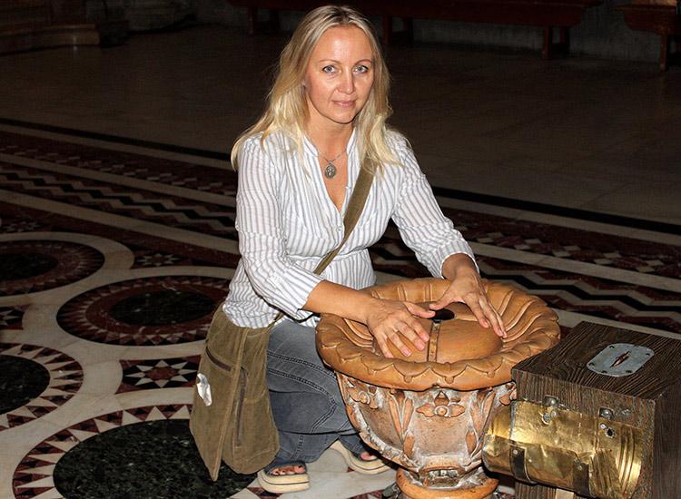 Прикоснулись к Пупу Земли - космологическое понятие центра мира в различных религиозно-мифологических традициях. С древности христиане стали называть так Иерусалим. По православной традиции Пуп Земли сейчас находится внутри Храма Гроба Господня.