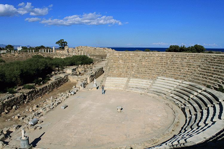 Другим значительным памятником Саламина является римский амфитеатр. Театр, как и гимнасий, был построен в римскую эпоху – в I веке нашей эры, и заброшен IV веке. Театр Саламина был самым большим не только на Кипре, но и во всем Восточном Средиземноморье. Его 50 рядов вмещали 15 тысяч зрителей!