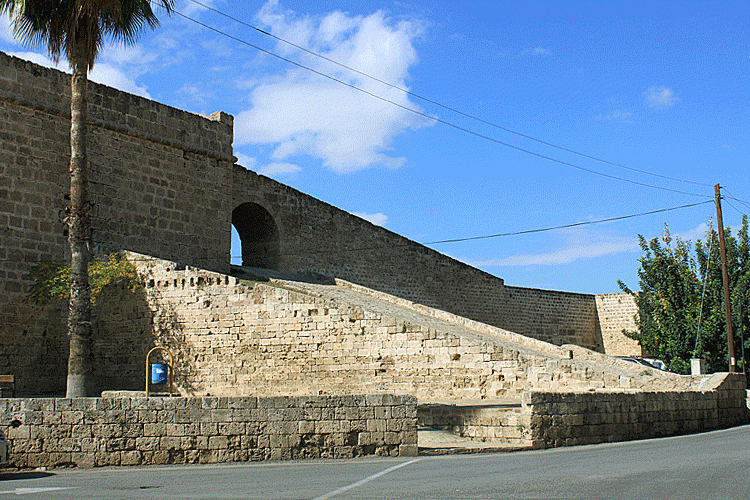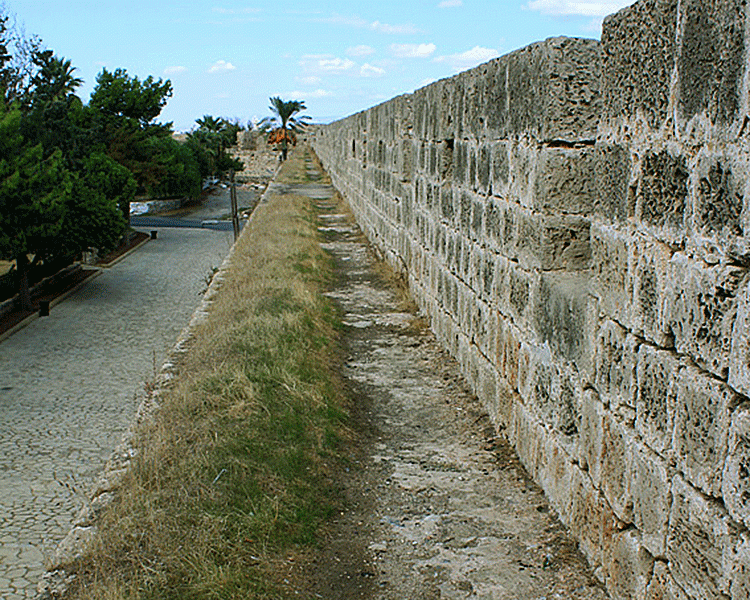 Весь древний город Фамагуста окружён двойной стеной. Стены города построены из камня.