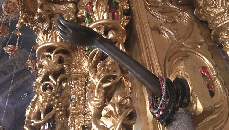 Напоминанием об этом служит черная рука, которая находится рядом с Киккской иконой.