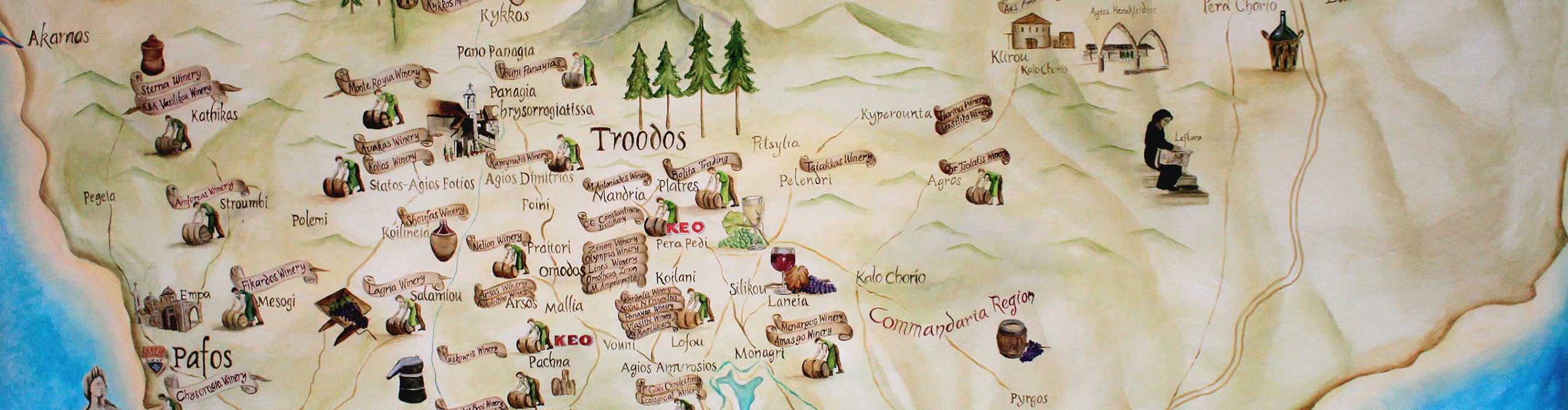 На южных склонах Троодоса расположен винный регион Лимассол, который включает 20 местных селений.