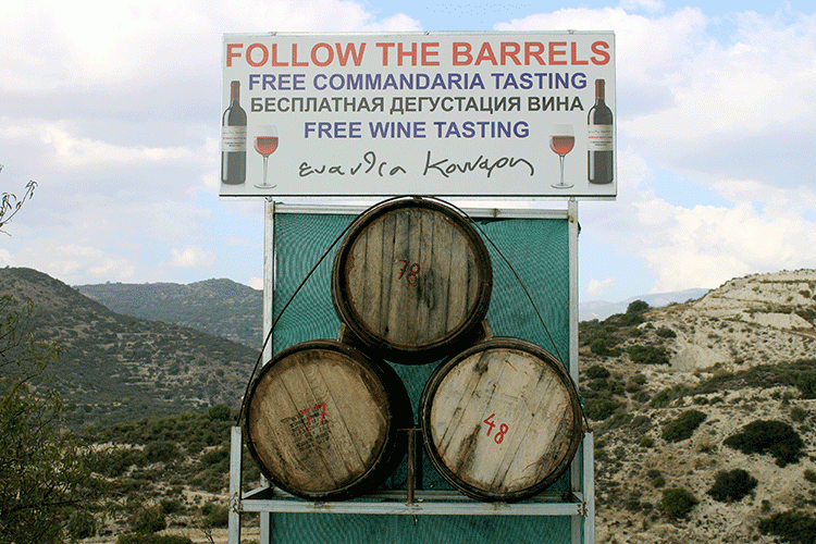 Поднимаясь из Лимассола в горы Троодос, вы вскоре увидите винные бочки, установленные на высоких помостах, и возле них надписи - "Следуйте за бочками!". В очередной раз проезжая по этому пути, я решила принять приглашение. Итак, следуем за бочками в горную деревню Монагри на дегустацию кипрских вин и удивительных деликатесов из винограда.
