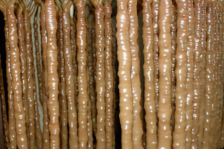 Чурхелла. Это толстые сладкие «колбаски», которые готовят из нанизанных на нитку орехов в загущенном мукой виноградном соке. Правда, на Кипре их называют «суджуко». Киприоты часто используют эту сладость в качестве закуски для виноградной же водки «Зивании».
