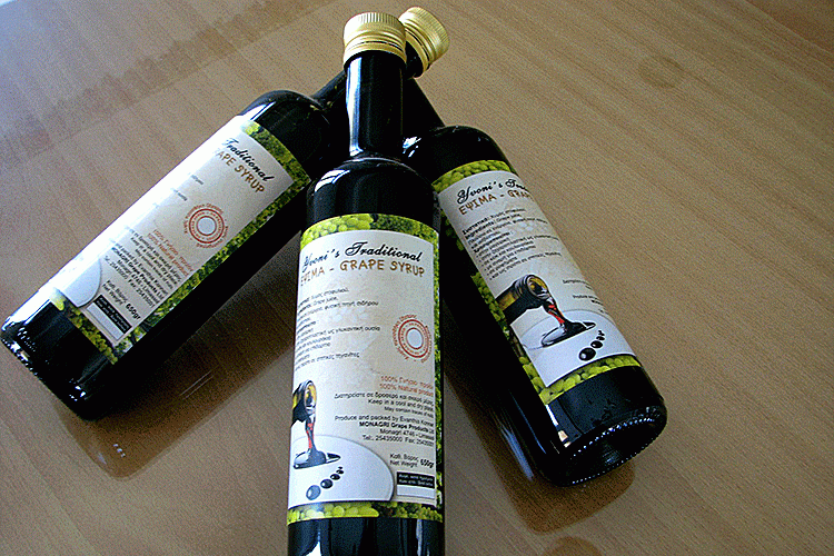 Виноградный сироп (Эпсима). Готовится из натурального виноградного сока путем продолжительного кипячения (выпаривания) на очень медленном огне. В результате сок загущается и приобретает золотисто-коричневый оттенок. Виноградный сироп можно использовать в чистом виде в качестве приправ для блюд из свежих овощей или мяса, сладкой приправы к йогурту, блинчикам и пр. Виноградный сироп невероятно полезен! Вкусный и полезный - согласитесь, это редкое сочетание.